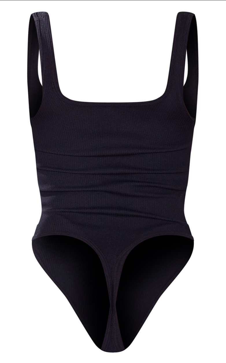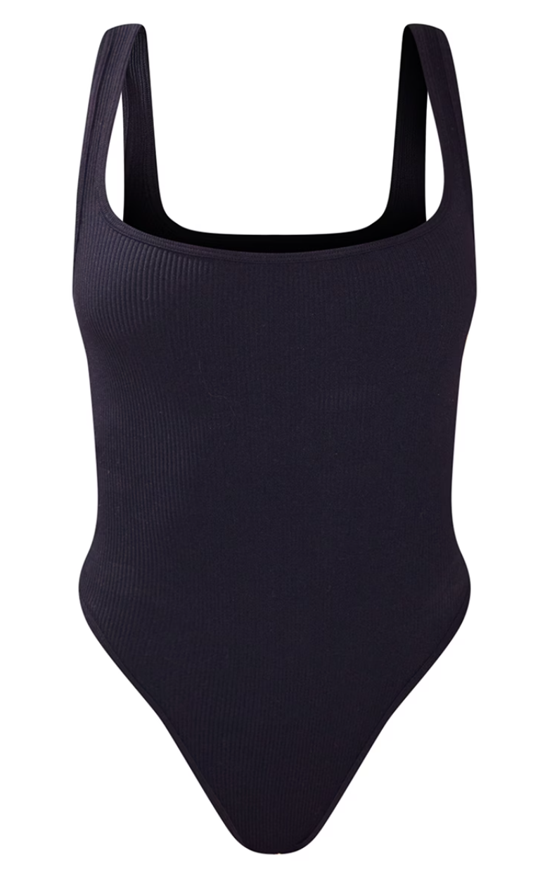 Black Contour Rib Square Neck Sleeveless Bodysuit