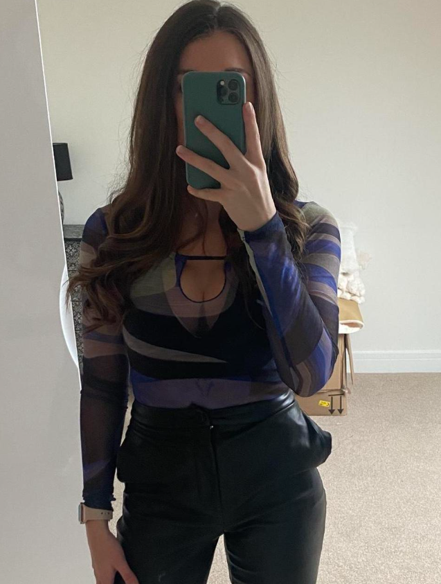 Blue Swirl Print Mesh Bardot Halter Bodysuit
