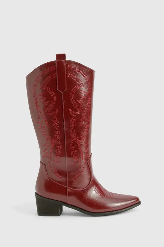 boohoo Vintage Look Calf Detail Embroidered Western Cowboy Boots