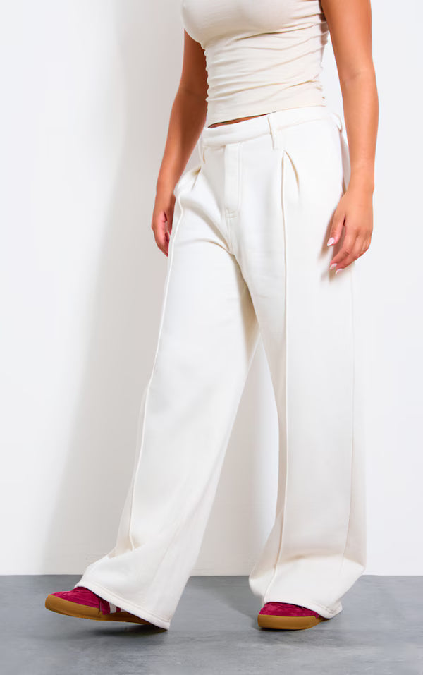 Cream Pintuck Fleeceback Tailored Sweatpants