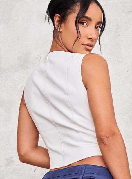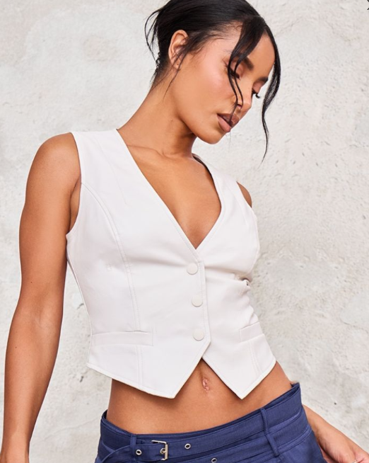 When chic styling calls, so does this ecru faux leather fitted waistcoat. Brought to you in an ecru shade, with a luxe faux leather material and fitted design, how can you resist? Style with a blue mini skirt, knee length white boots and simple accessories for a look we're all loving. Get ready to have styling made easy.