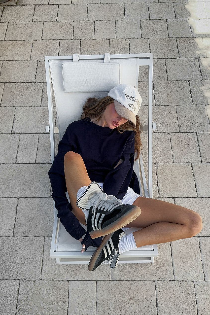 This top is knitted and features a stretchy material. It has a round neckline and long sleeves with cut out details. This top comes in navy. Influencer: @hannaschonberg is 165 cm tall and is wearing size x-small (EU 34, UK 8, US 4).