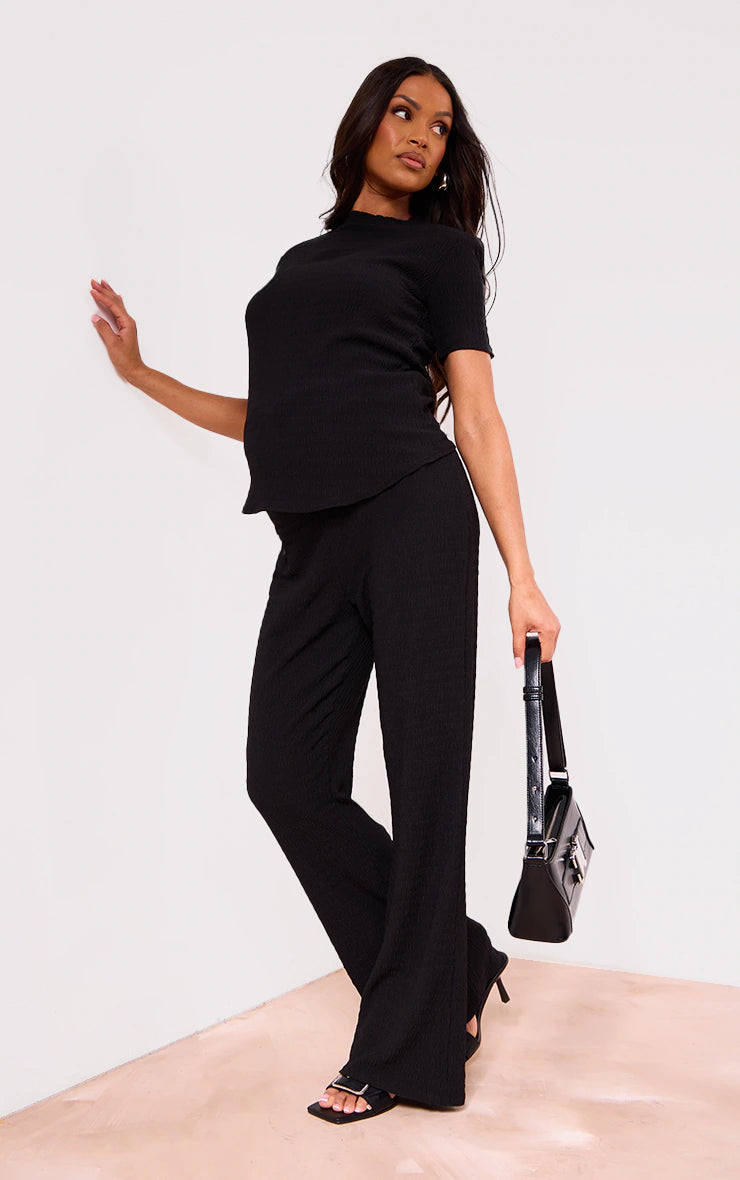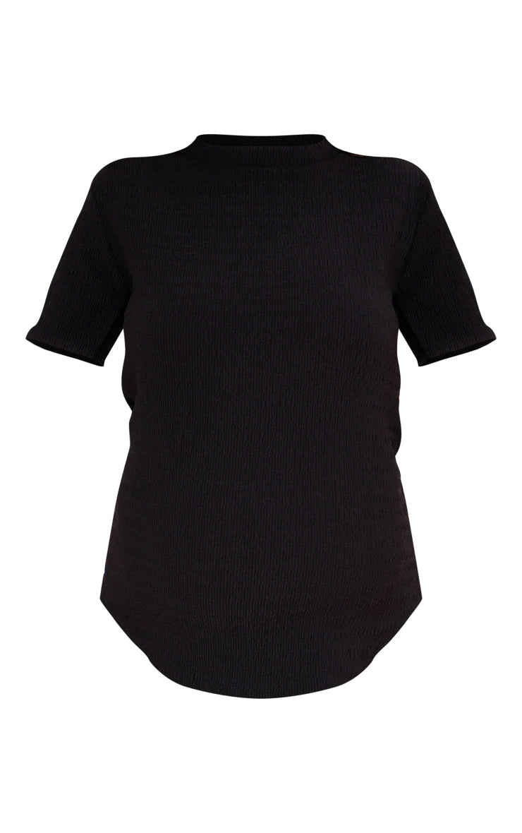 This maternity black textured short sleeve top is about to become a staple in your new season wardrobe. Brought to you in a black hue textured material with short sleeves and a bump-hugging fit, what more could you want? Pair this black top with matching hue trousers, heels and a mini bag for an effortlessly chic look worthy of your weekend plans.