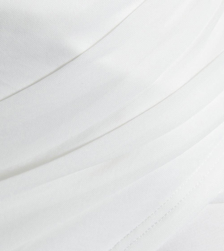 Mesh Bardot Long Sleeves Wrap Mini Dress