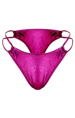 Pink Metallic Double Strap Tanga Bikini Bottoms