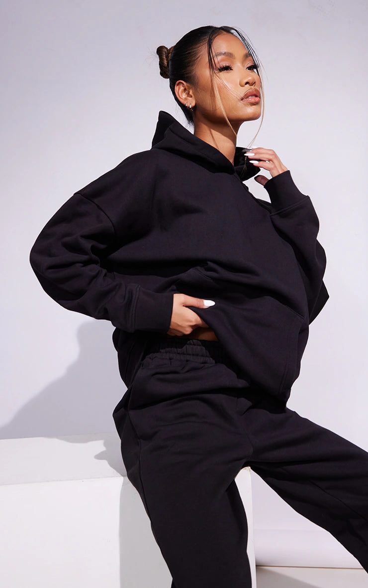 PREMIUM COAL BLACK SPORTS ACADEMY PUFF PRINT OVERSIZED HOODIE & PRINT OVERSIZED JOGGERS SET