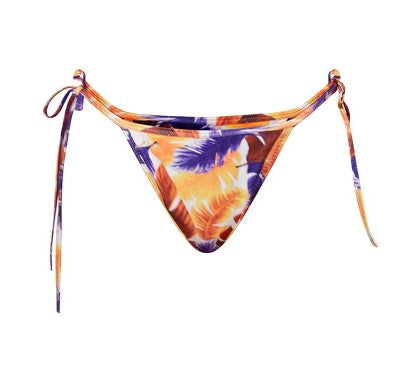 Purple Shadow Leaf Printed Tie Side Bikini Bottoms