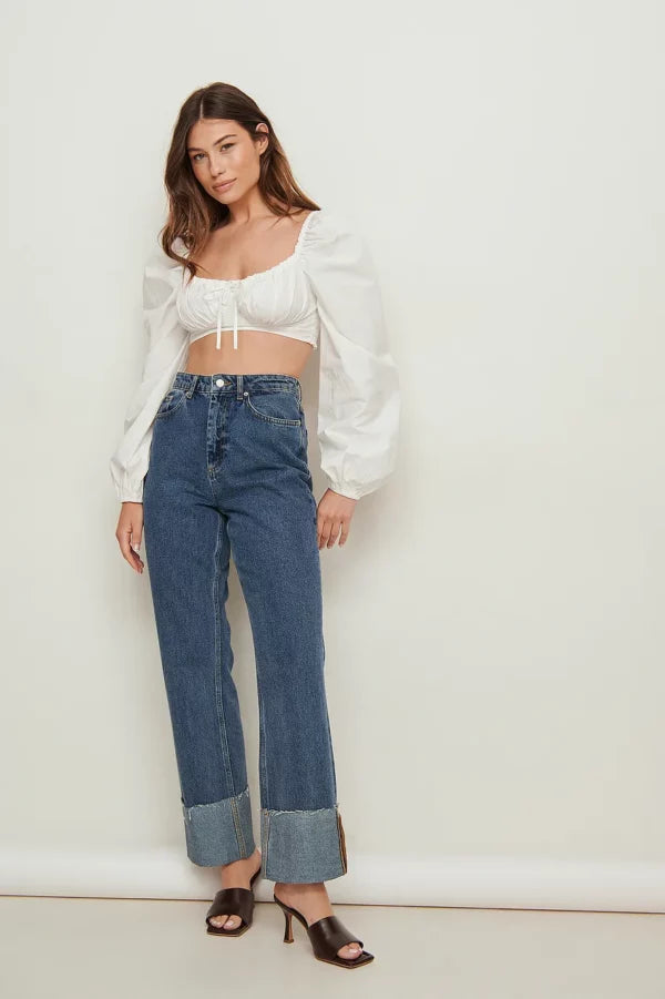Modelja eshte e gjate 173cm dhe ka te veshur masen 36(S)
