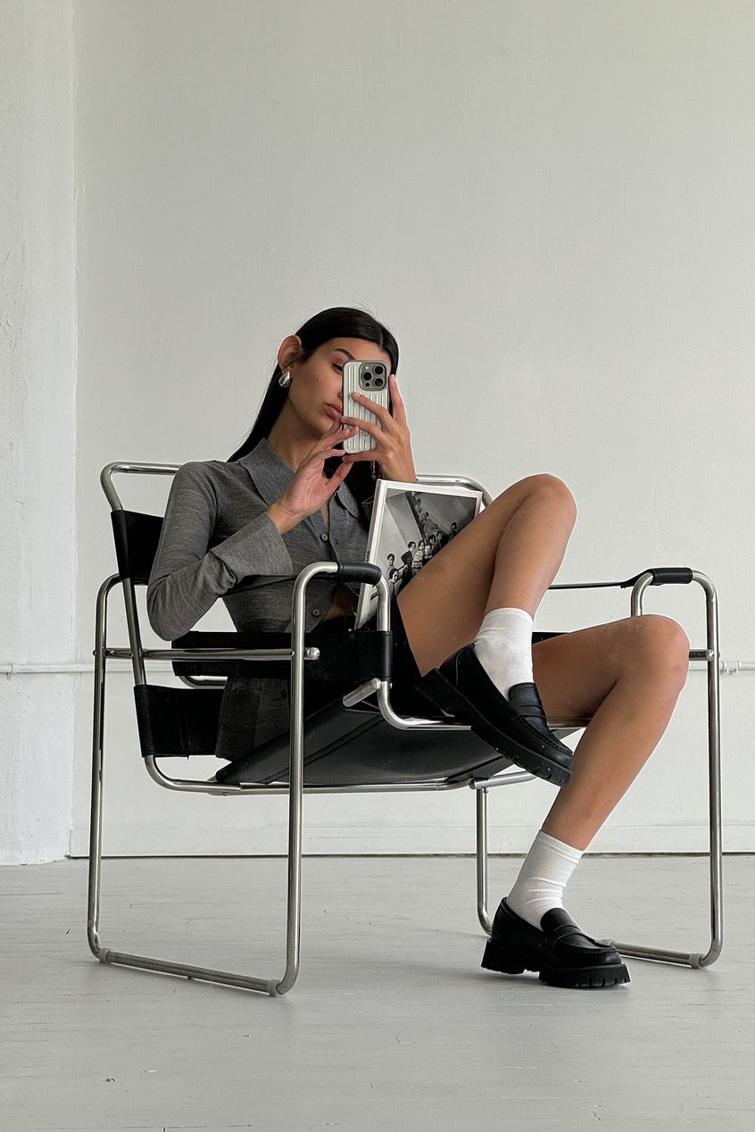 These loafers feature a slim fit and a slip-on design. They have a seam detail at the top and a rounded toe. Our loafers feature a chunky sole. Measurements in size EU 39: Sole height: 4 cm / 1.57 in. These loafers come in black.