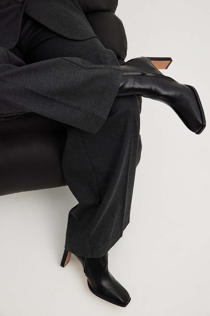 These boots feature ankle length, a squared toe, a side zipper closure, seam details and a block heel. Heel Height: 9,6 cm / 3.8 in. The shaft height on this boot measures 6 cm / 2.36 in in size EU 39. The shaft height might differ from size to size. These boots come in black.