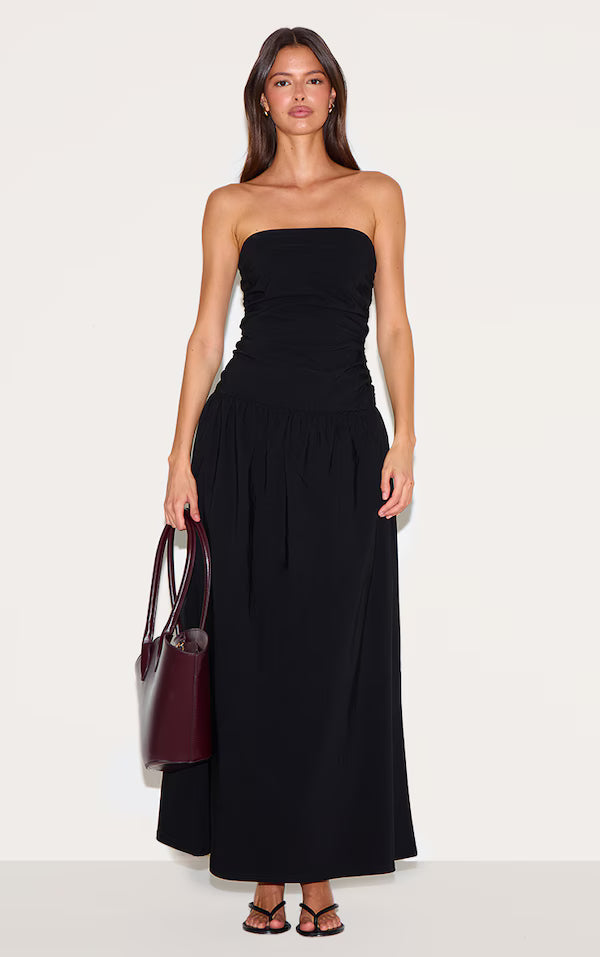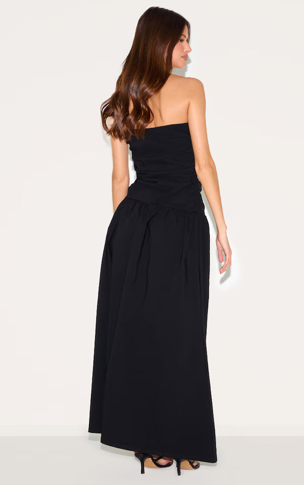 Black Stretch Woven Bandeau Ruched Maxi Dress