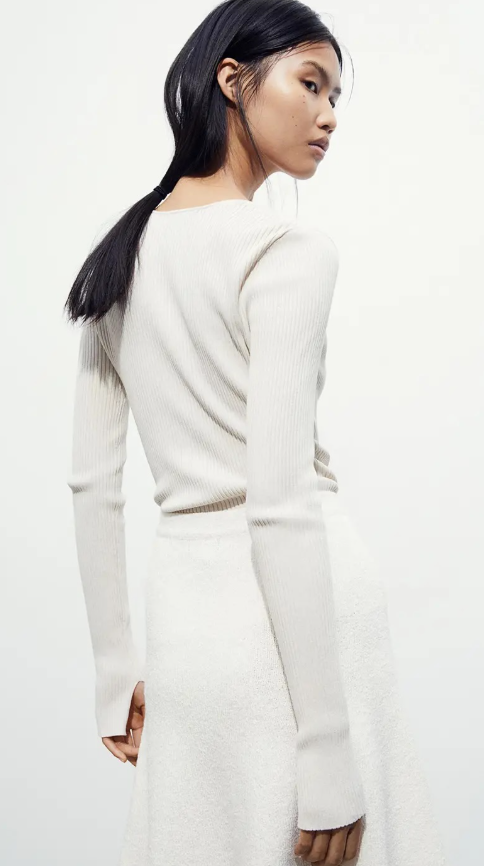 H&m - RIB-KNIT SWEETHEART-NECK TOP- Cream