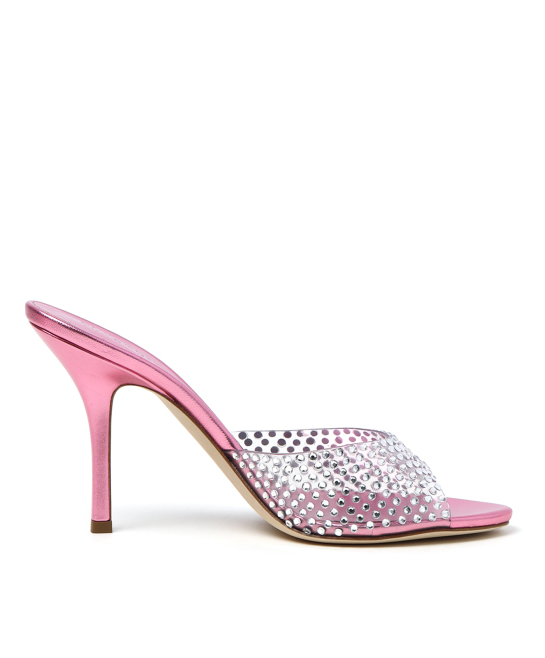 Lilac Wide Fit metallic round toe diamante high heeled sandals