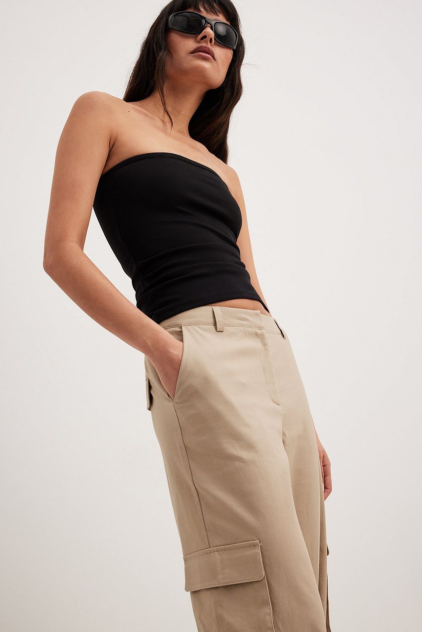 These trousers feature a linen blend. They have a cargo design and a straight leg. These trousers feature side slant pockets, patched flap pockets along each leg and a back mock pocket. Inseam length in size 36: 81 cm / 31.88 in. These trousers comes in beige.
