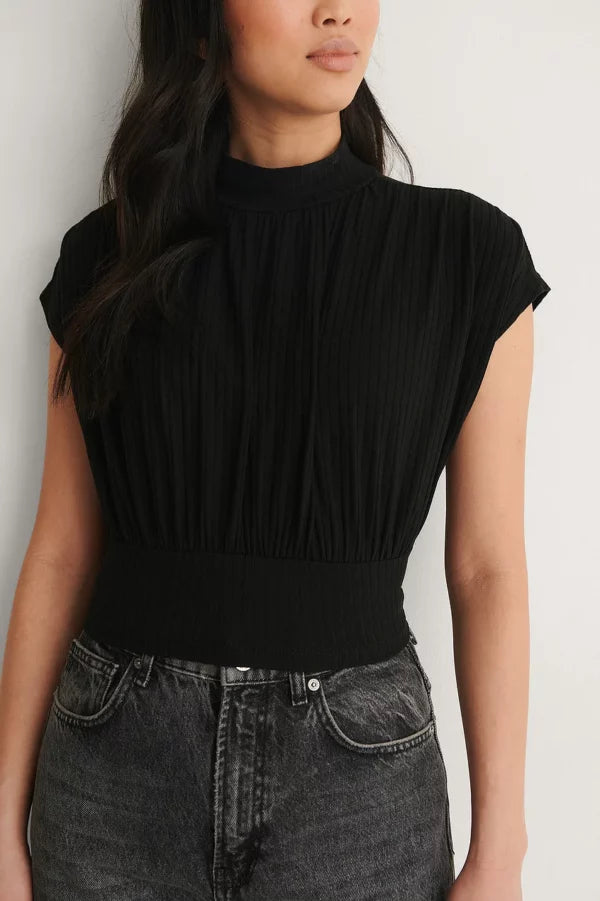 Flowy Short Sleeve Knot Top Black